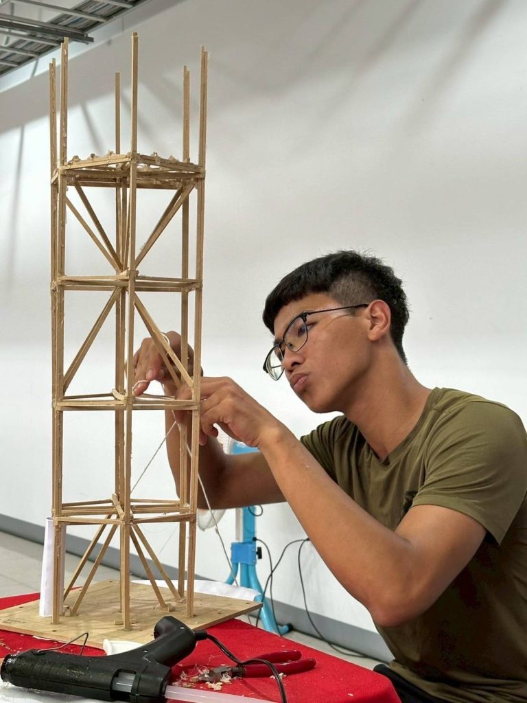 當他們親手設計並建造的模型被置於高強度振動測試臺上,模擬地震的劇烈搖晃時,它如同一位沉著的戰士,巍然不動,順利通過所有考驗。這座在極限挑戰中傲然挺立的木構模型,不僅僅是一項作品,更是對「防患於未然」這一土木工程核心精神的有力詮釋。