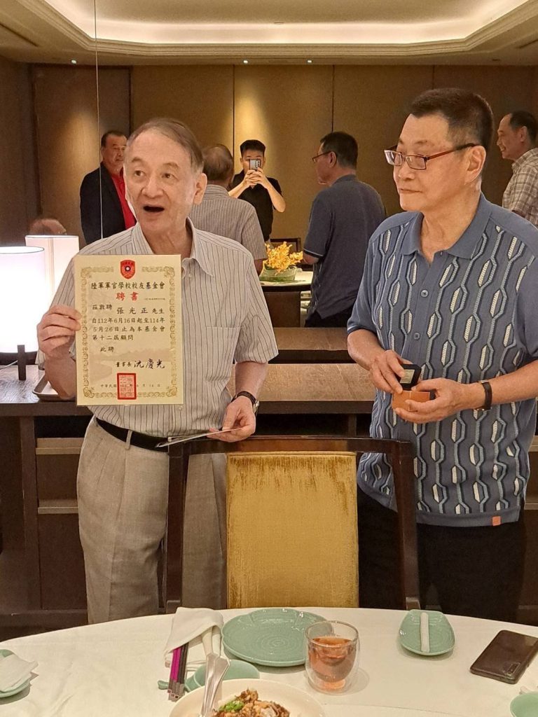 【本刊訊】前中原大學校長、現任財團法人商業發展研究院院長張光正應邀出席黃埔一期王仲廉將軍「征塵回憶」再版發表會,會中,沈董事長敦聘張前校長為基金會第十二屆顧問,頒發顧問證書,借重其在教育界的影響力,讓基金會如虎添翼。 張靜愚將軍是清華大學畢業,黃埔軍校第1期最早聘任的文官之一,曾任國民革命軍北伐軍航空隊司令,也是杭州筧橋空軍軍官學校首任校長。張靜愚將軍生前主張工業救國,熱心辦實業、興教育,成立中原理工學院(今日的中原大學),曾任中原大學董事長,兼任東海大學董事長,為國家培養一批批理工人才,辦學聲望崇隆。 張靜愚將軍公子張光正克紹箕裘,兩度出任中原大學校長,曾任明新科技大學校長、實踐大學校長,在教育界建樹卓著,口碑載道,沈董事長特敦聘張前校長為基金會第十二屆顧問,加入基金會生力軍,並頒發張前校長顧問聘書,致贈其金質﹁黃埔建軍建校百年紀念徽﹂乙枚。
