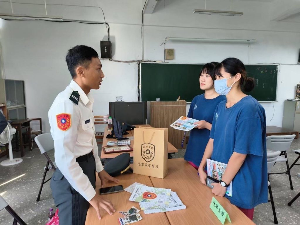 延攬優秀學子加入陸官 軍旅生涯圓夢2024-01-20 陸軍官校新聞官 張原愷 為使有意加入軍校行列的青年學子,能更加了解軍校生活與畢業後發展,陸軍官校招生組日前分別前往臺南女中、基隆女中、中正高中、屏東女中、花蓮女中、暖暖高中、清水高中、慧燈高中及大溪高中等9校進行招生宣導。 針對陸軍官校各系特色和未來展望等,官校男、女同學以「過來人」向青年學子們分享軍校實際生活經驗,以及透過交流互動、Q&A等,期號召優秀青年學子選擇加入陸軍官校大家庭,開創與眾不同的人生! 上一 文章 (短影音)技職教育是產業人才的解決方案-張明王國秀文教基金會董事長 張起龍 下一 文章 十公里路跑活動 提升運動風氣