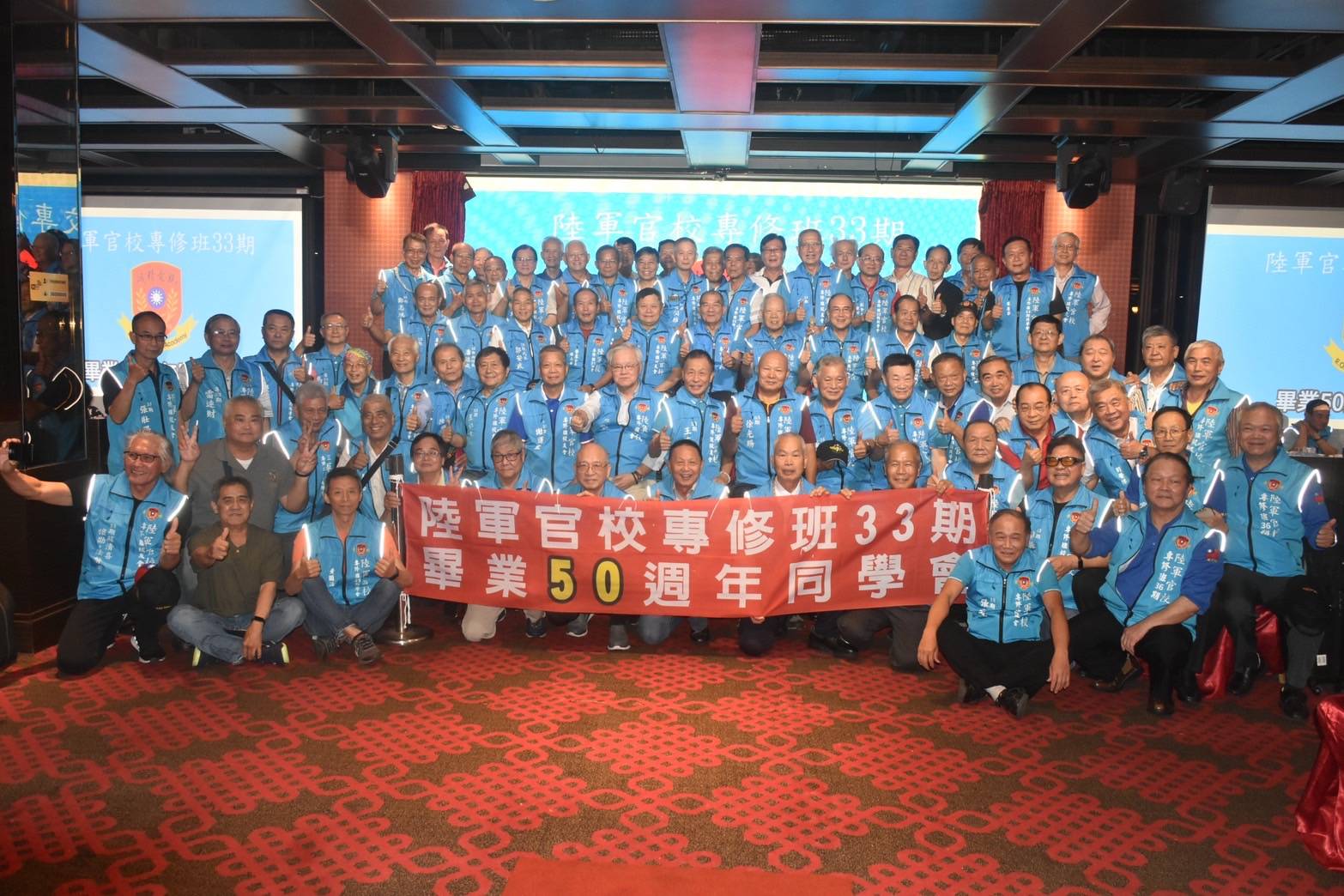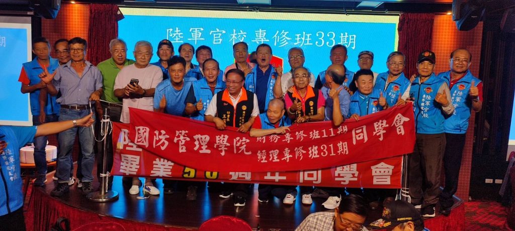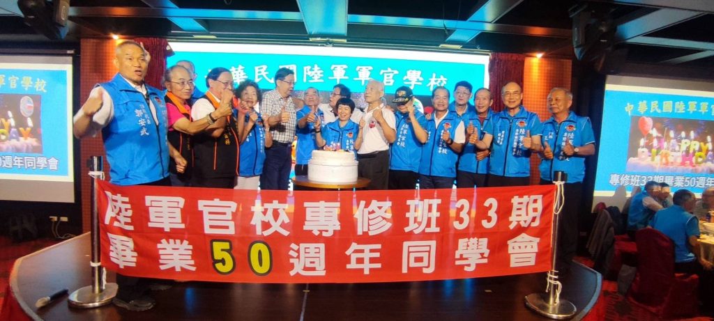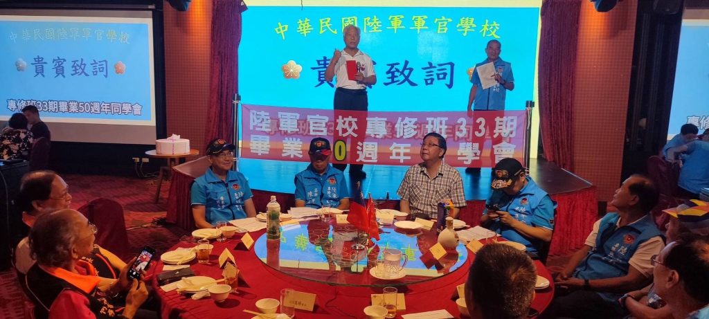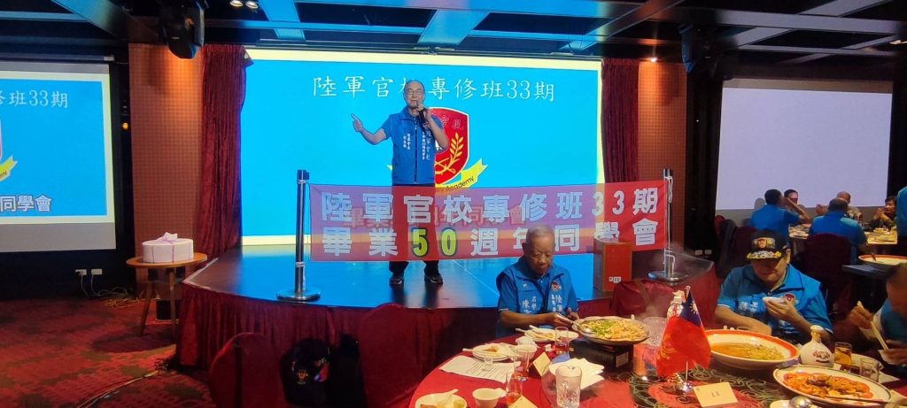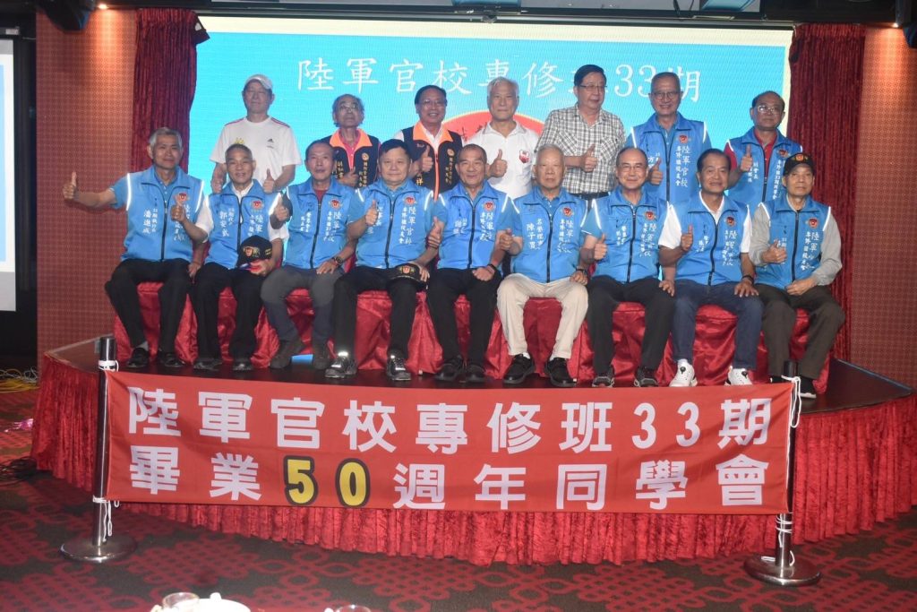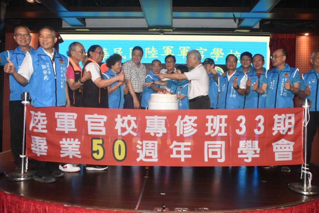 4月20日欣逢陸軍官校專修班33期畢業50週年慶日,該期同學二百餘人假台中市女兒紅婚宴會館舉行同學聯誼餐會;除了該期同學、眷屬外,尚有專修36期、國防管理學院校友會、陸戰隊袍澤戰友共襄盛舉,席開20桌會場氣氛融洽歡樂,畢業50年的同學會,大夥都非常珍惜,餐會時自動的以50年前的連上同學聚在一起話家常。