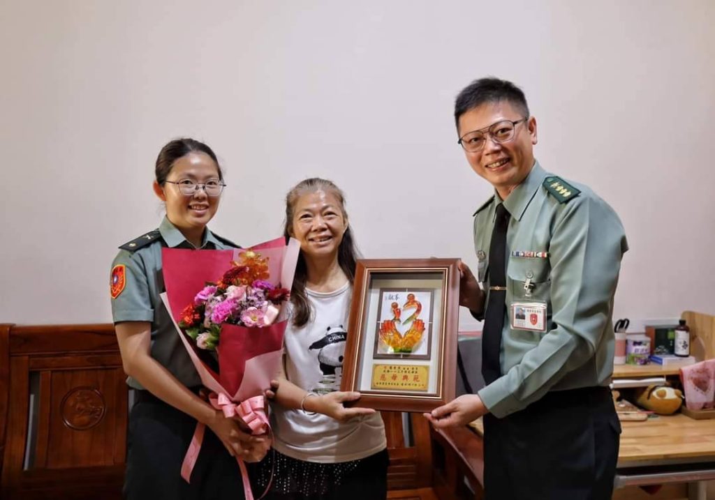 為彰顯母儀典範,陸軍官校學務處長黃孫上校於6日前往屏東及嘉義地區表揚榮獲官校「113年度模範母親」的羅秀燕女士及張玉霞女士,並代表校長頒贈「慈母典範」賀屏及花束,表彰兩位母親勤儉持家、茹苦含辛教化子女從軍報國、蔚為國用的懿德佳行,並提前祝賀母親節快樂!