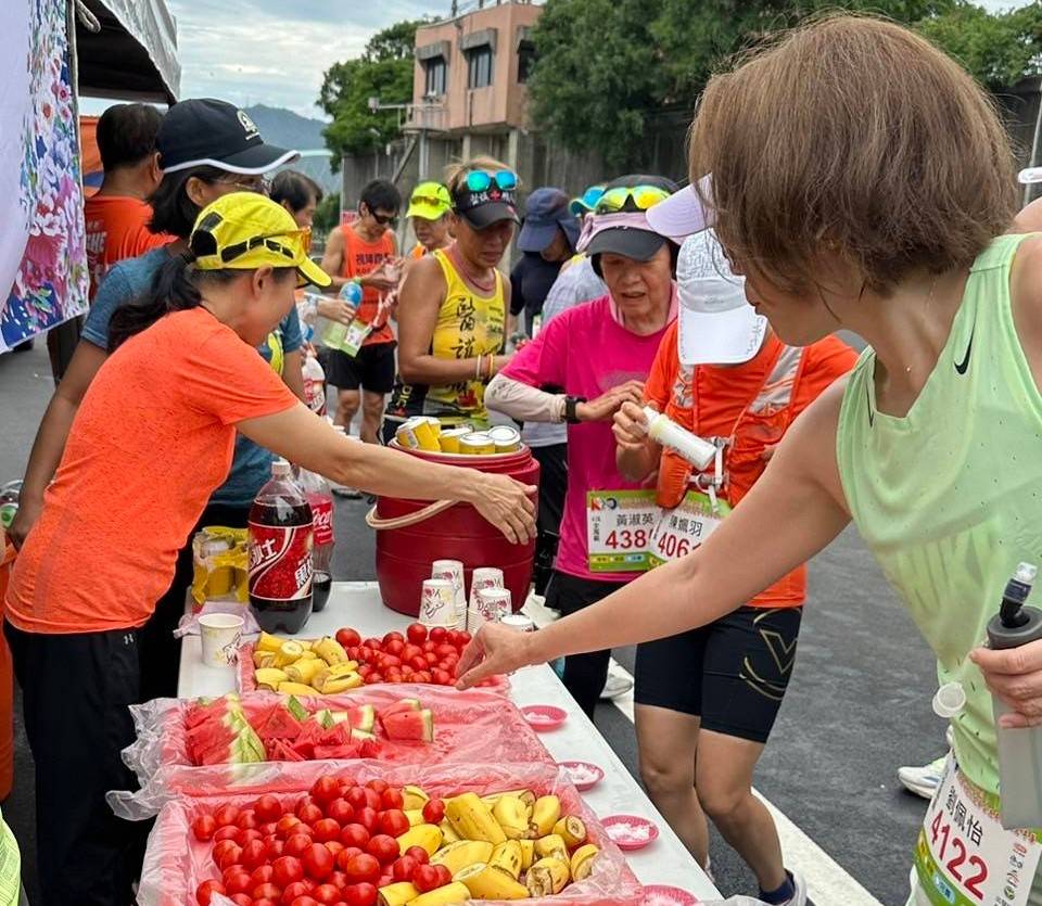 大會提供琳瑯滿目的水果、運動飲料和冰品給跑友選手補充水分補足體力。