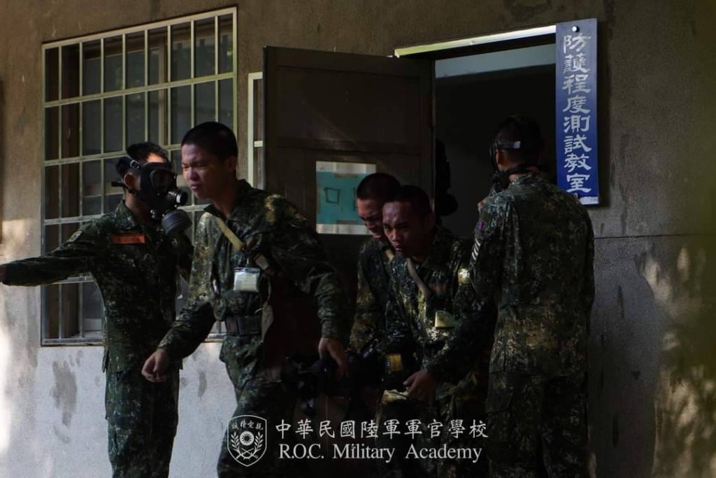 入伍生化生放核訓練2024-07-18 陸軍官校新聞官 林長鴻 「化生放核訓練」目的在於培養入伍生具備核生化戰場基本的處置能力及抗壓能力,建立未來可能遭遇「化、生、放、核」威脅的正確防護觀念,訓練入伍生們透過實戴防護面具並進入防護程度測試教室,磨練臨場反應與狀況處置。 首先由教官介紹核生化戰場特性、T3-75防護面具正確配戴方法及T4-86消除包使用方式等原則講解,並在實作練習中,訓練入伍生在時限內完成防護面具的配戴及密合測試,讓入伍生即使在極端環境下,仍能發揮訓練成效,冷靜沉著應對。 上一 文章 入伍生近戰格鬥訓練 下一 文章 人生如行旅 一生無怨悔