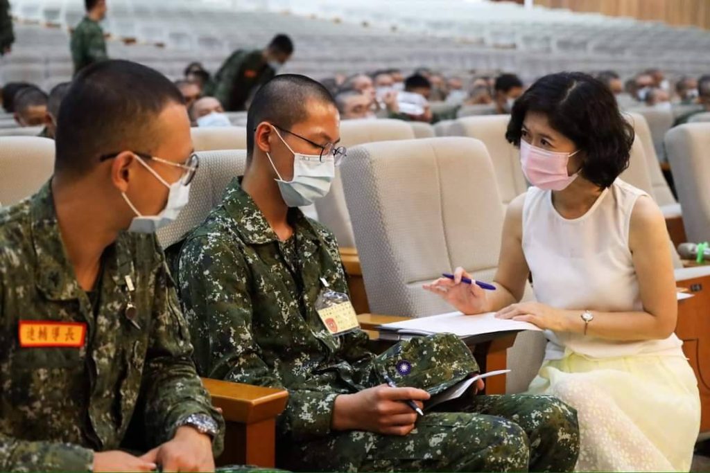 陸官入伍生調適教育首日課程,在中正堂由心衛中心溫菲琪老師對入伍生實施心輔教育座談。首先,溫老師向入伍生特別介紹官校心衛中心及輔導人員,以勵志故事做引言,告訴每一位入伍生無論從哪裡而來都要保持著那份莫忘初衷的堅持。