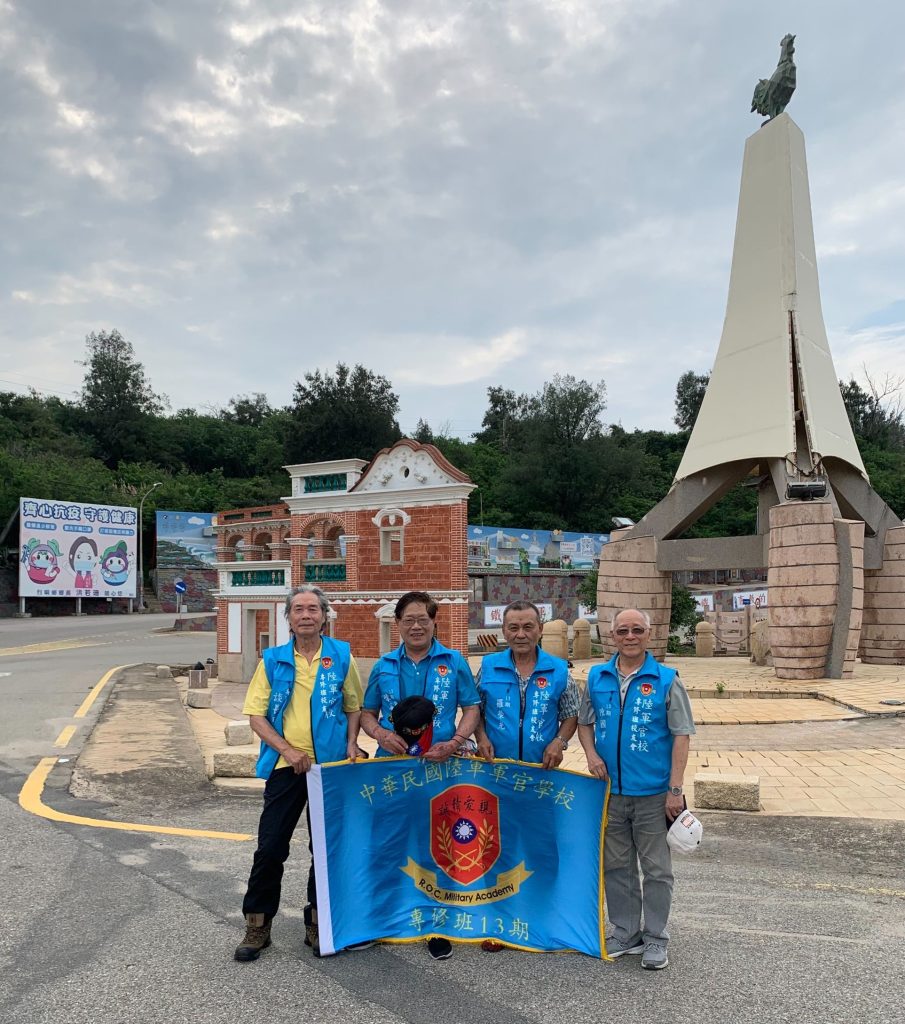 陳君甫學長(右二)與軍校同學在金門烈嶼鄉景點合影。