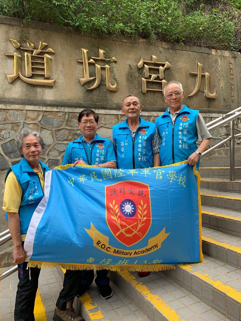 陳君甫學長(左二)與軍校同學參訪九宮坑道合影。