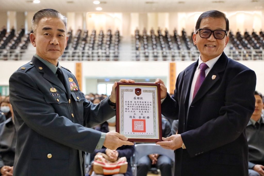 民國13年國父創建黃埔軍校之目的,乃是訓練真正的革命軍,效法先烈的革命奮鬥精神,掃除革命障礙,以完成國民革命軍之使命;並且在重榮譽、守紀律、精誠團結的要求下,培養一支「不怕死、不貪財、愛國家、愛百姓」的鋼鐵勁旅。一部黃埔校史,就是一部國民革命史,充滿了無限悲壯的史歌詩篇;緬懷我黃埔軍校百年來的光榮史蹟,展望未來光明前景,尤須我全體黃埔子弟一脈相承,堅定效忠國家民族,面對狂濤逆流挑戰,必須發揚黃埔精神,撥亂反正,仆而復起,危而再興。今日欣逢黃埔建校一百周年榮耀之刻,我全體黃埔師生更須堅定自我堅苦卓絕的精神志業,薪火相傳,捍衛中華民國之生存與發展,擔當起國家安全的保障,社會安定的磐石,全體人民敬重的鋼鐵勁旅,再創我黃埔下一個百年光輝史頁!