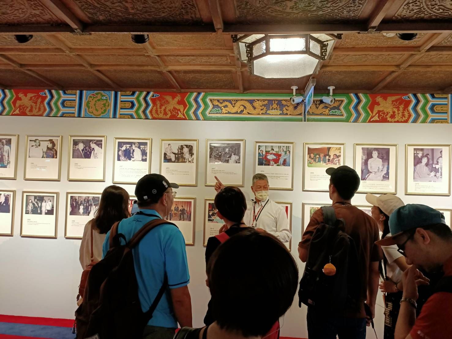 我總對蒞訪的來賓介紹,先總統 蔣公在台灣主政前九年,將勞工薪資所得提高十六倍,使參觀者深凜 蔣公的德澤;另一張是蔣宋美齡女士與新加坡總理李光耀面談照片,李光耀總理來華訪問下榻圓山大飯店廿五次,是最多的國家元首,我會說明李光耀總理來台學習台灣經驗,當時台灣是亞洲四小龍之首,台灣錢淹腳目的年代,帶著觀眾回憶偉大與光榮的時代。