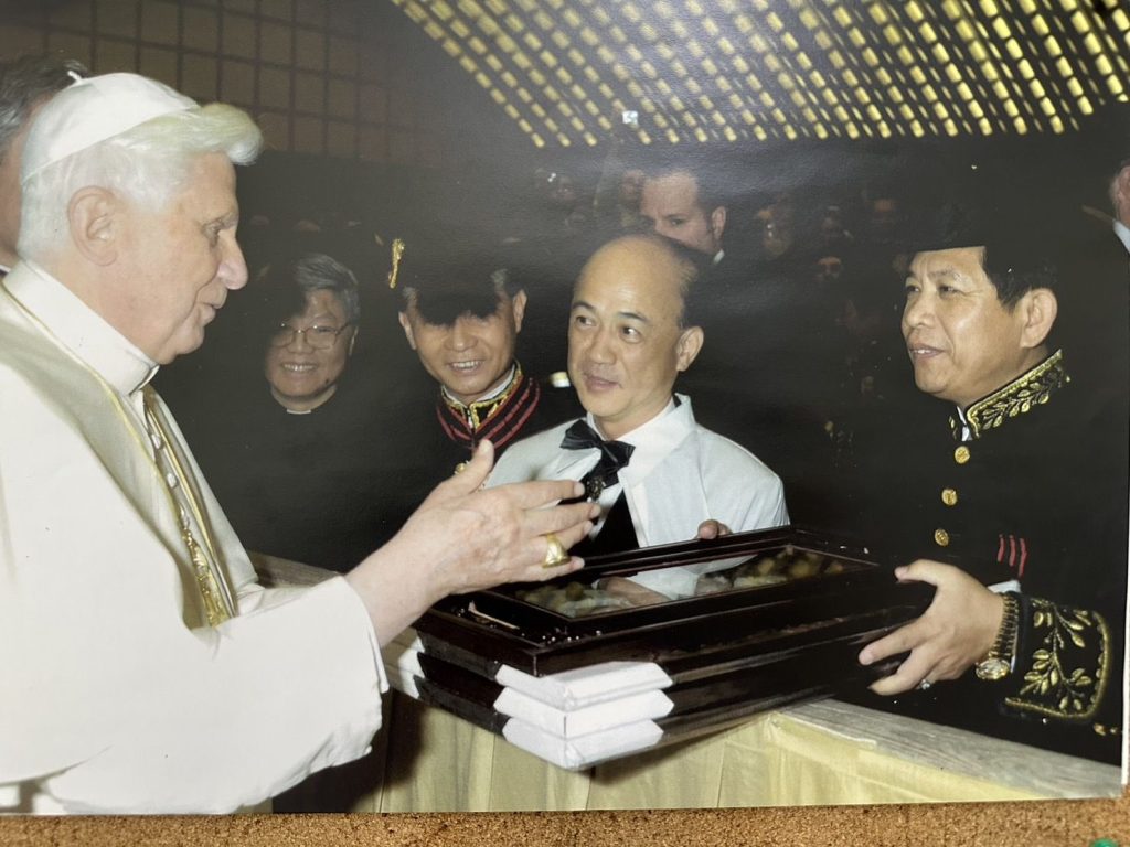 民國93年7月11日由單樞機主教國璽轉頒教宗若望保祿二世的冊封詔書、銀質勳章及寶劍,冊封為教廷爵士,以表彰對教會和社會的貢獻。98年2月11 日梵蒂岡城國80周年國慶,在外交部的安排下,個人偕同立委李復興爵士、內政部宗教諮詢委員張舜明騎士,在中華民國駐教廷大使王豫元先生的陪同下,於梵蒂岡保碌大廳,晉見教宗本篤十六世,強化兩國邦誼。