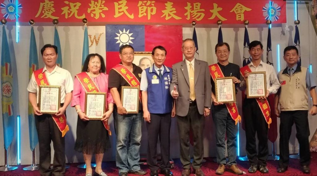 陳增吉學長(右三)在第41屆榮民節大會上接受榮民楷模表揚。