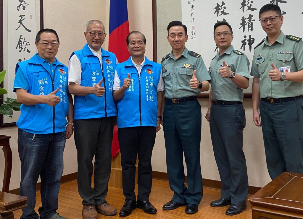 陳增吉學長陪同觀禮陸官專修32、33、34、35期畢業50周年致贈母校紀念盤活動,並為大家拍照見證。