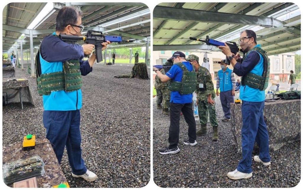 陳增吉學長親自體驗官校校慶營區開放活動射擊訓練。