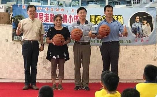 「讓愛跑、跳、碰-小林有愛」陳增吉學長(左一)贈送屏東縣市學校籃球300顆。