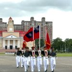 時間節拍是那麼的緊湊,才剛回神過來,軍樂隊已響起了“校歌”的前奏曲,觀禮台上年邁的學長和校閱場上年輕的學弟一起都聽到了;“怒潮澎湃,黨旗飛舞”,“老校友們”滄桑沙啞的氣格聲調,和“軍校生們”激昂高亢的嘹亮韻律,一起在豪情濃郁的空氣中交織、疊加,這是龍吟與虎嘯的對峙,一陣陣冰火激盪的耾耾回響;也是力拔山河氣蓋世,歷史時空的壯麗對話。