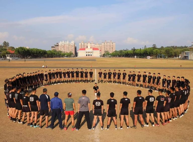 陸軍官校橄欖球隊立球儀式 ,象徵勇橄精神。