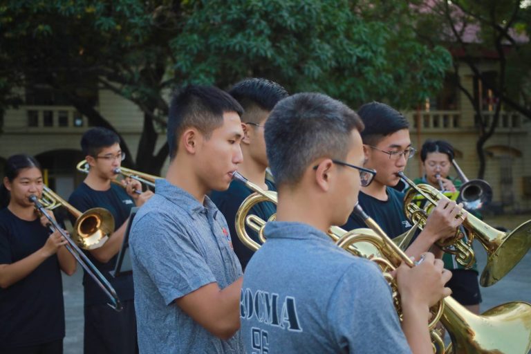黃埔軍樂隊專注於樂譜, 奏出黃埔旋律。